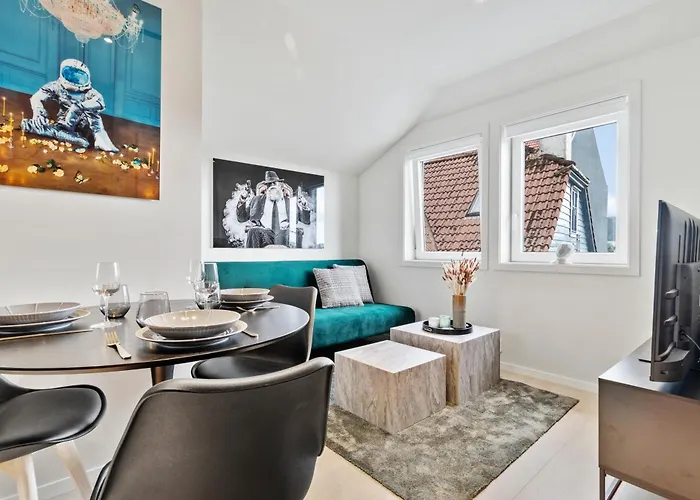 O apartamento Luxury Suite In Charming Area oferece cozinha totalmente equipada, bem como quartos com sofá, TV de tela plana com canais via satélite e TV com vários canais. Há Bairro de Bryggen a 12 minutos a pé de apartamento.